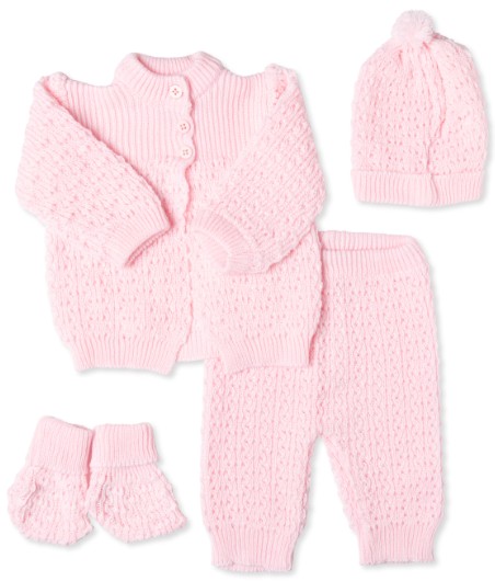 - 4 piece baby boxed set - Hat, Cardigan, Pants and Booties pink 0 - 6 months**